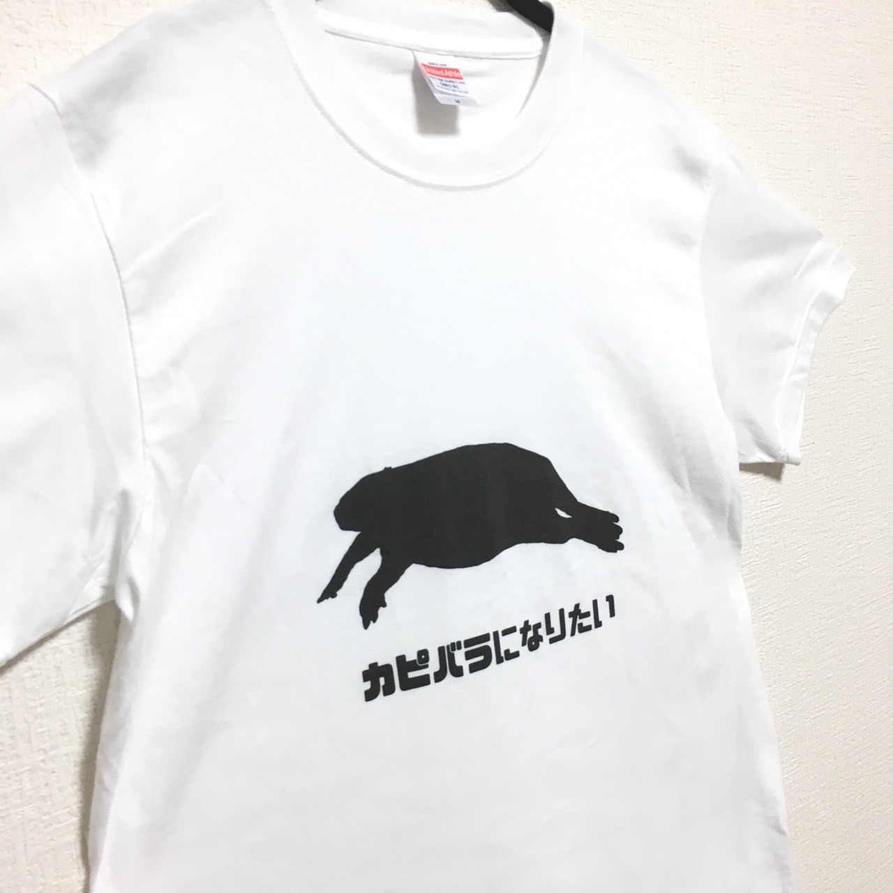 一目見て、カピバラになりたいことが一目瞭然のこのTシャツ。