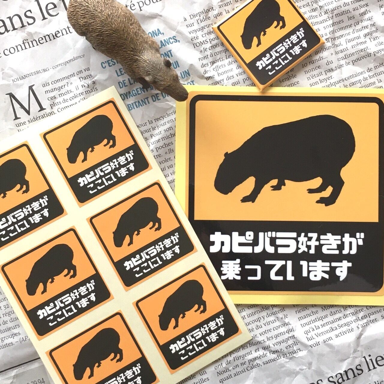 \カピバラ好きの方必見/ カピバラ好きをアピールできる車用のステッカーシールです。 これまでのマグネットタイプに続き、強粘着のシールタイプが登場しました! マグネットタイプと同柄・同サイズですが、シールタイプなのでマグネットタイプよりもかなり薄いです。 強粘着タイプなので、若干の曲面や凹凸のある面でも、シール浮きすることなく貼ることができます。(あまり凹凸が大きい場合はシワが寄ってしまう場合があります) 屋外で長期間貼っておいても色落ちが目立たない耐水・耐候インクを使用しています。 また、表面にはラミネート加工が施され、インクの色落ちや摩擦による劣化を防ぎます。表面はツヤがある質感です。 \こんな方におすすめ!/ ・車体にマグネットがくっつかない車種の方。 ・マグネットが剥がれないか心配な方。 (数年使用でも勝手に剥がれたことはありませんが) ・カピバラ好きを車でも存分にアピールしたい方。 ・一生カピバラが好きな方。 ステッカーを見た人は、「あ、カピバラが好きな人が、車に乗っているんだな」ということが分かるのでおすすめです! 柄:四つ足 数量:ステッカー(強粘着タイプ)1枚 サイズ:10cm×10cm カラー:黄黒 ※ステッカー表面に、細かい気泡が見られる場合がございます。これは、ラミネートの糊とステッカーの間に空気が入ることで発生する現象で、不良ではございません。製造元にて良品の範囲内となっているものであり、ご交換の対応はいたしかねますのでご了承くださいませ。 ~ステッカーシールを車に使用する場合のご注意~ ・貼る際には、車体等の表水分・汚れ等をよく拭き取ってからご使用ください。 ・一度貼ると剥がしにくいので、貼る場所をよくご確認の上、どうか失敗しないように貼り付けてください。 ・ステッカーを車に貼る場合は、その後に起こる車体への影響(剥がす時に粘着が残った、剥がした時そこだけボディカラーが濃いままだった、など)を考慮の上、自己責任でお願いいたします。ステッカーを貼ったことによる車への影響に関しましては、当店では一切の責任を追いかねます。 【素材・加工について】 ・白塩ビ 白地のフィルムシールです。 比較的柔らかく曲面に貼る場合にも優れています。車に貼るステッカーとしては最もポピュラーなタイプで、その他屋外用で幅広く使用されています。質感は光沢。 ※塩ビ素材(白塩ビ/透明塩ビ)は素材の特性上、温度差や時間経過により一方向に伸縮する場合がございます。そのため台紙が一部見えることがあります。予めご了承ください。 ・強粘着 一度貼ると剥がしにくいので、永久貼付を必要とする屋外商品の銘板などに用いられます。曲面や凹凸面に対して貼る場合はこのタイプを使用すれば、シールが浮いてくることを防ぐことができます。 ・表面ラミネート加工 印刷の表面を保護するフィルムで、色落ちや摩擦による劣化から、印刷面を保護する効果があります。こちらの商品は、光沢塩ビラミネート加工が施されています。ツヤを出すグロスタイプのフィルムを使用し、光が当たるとツヤツヤと反射し、美しい光沢感を演出することができます。